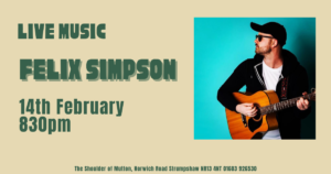 - Live Music – Come Celebrate our 8th BirthdayFelix Simpson – 14th February from 830pm Felix is back! & this time to celebrate us being at The Mutton for 8 years. Always a… Read more: Live Music – Come Celebrate our 8th Birthday