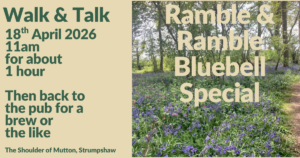 - Ramble & Ramble Bluebell Special18th April at 11am It’s Bluebell season! We don’t miss them so we’ve planned an extra Ramble & Ramble. Easter Saturday 11 am from the… Read more: Ramble & Ramble Bluebell Special