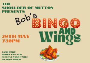 - Snakes Alive! It’s Bingo at The Mutton! – 20th May from 730pmBob’s Bingo & Wings – with Bobby Dazzler Where do wings come into it? 8 wings for £3.25 with a choice of sauce add fries… Read more: Snakes Alive! It’s Bingo at The Mutton! – 20th May from 730pm