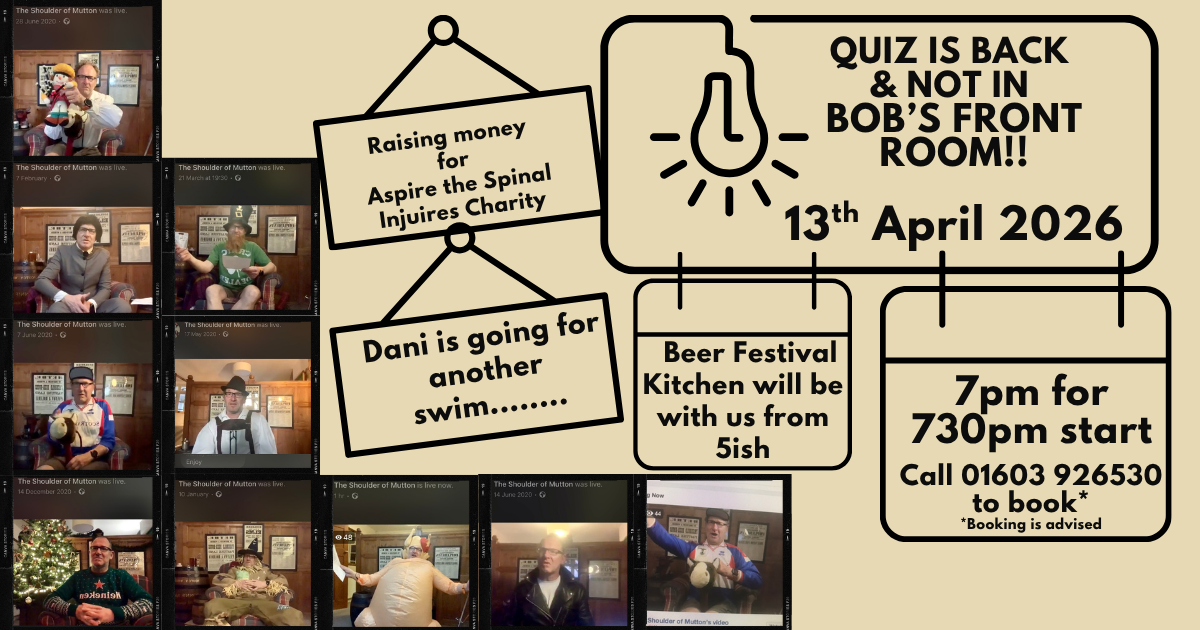First Monday of every month from 6pm – Kicking off on 6th April Do you own an interesting car or vehicle? Do you find cars or vehicles interesting?Fancy having a chat with people about cars or vehicles they own? Come to The Shoulder of Mutton! This is a very informal gathering organised by Nick Price […]