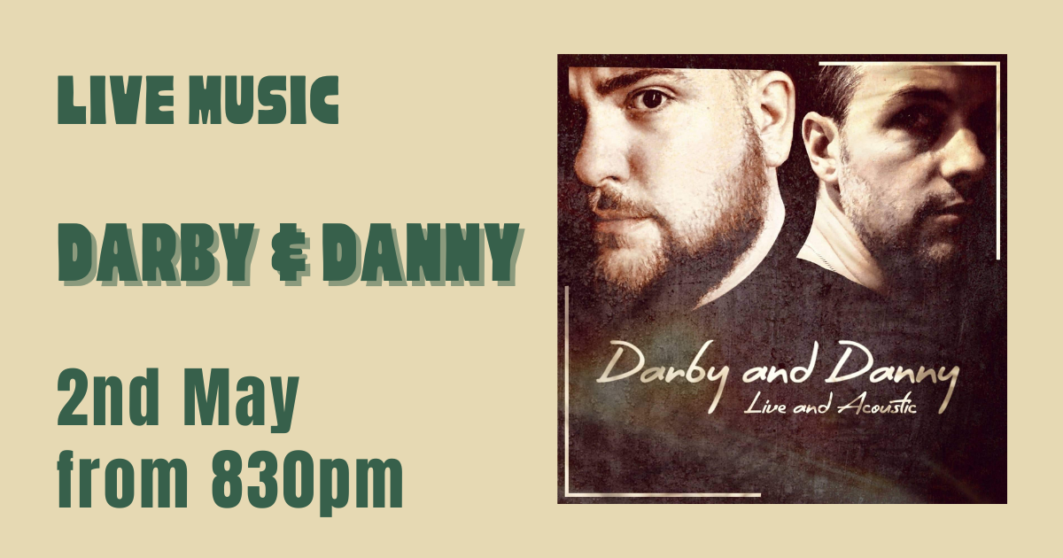 Live Music – Darby & Danny Share: Web: 2nd May from 830pm The fabulous Darby and Danny are back at The Mutton. Firm favourites for The Mutton. They will wow you with their acoustic covers & great performance. This is one not to miss.