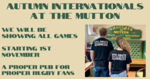 - Autumn Internationals 2025All Games Being Shown Watch all of the Autumn internationals here at The Mutton, starting with England v Australia Saturday 1st Nov 3.10pm KO If you have a preferred table,… Read more: Autumn Internationals 2025