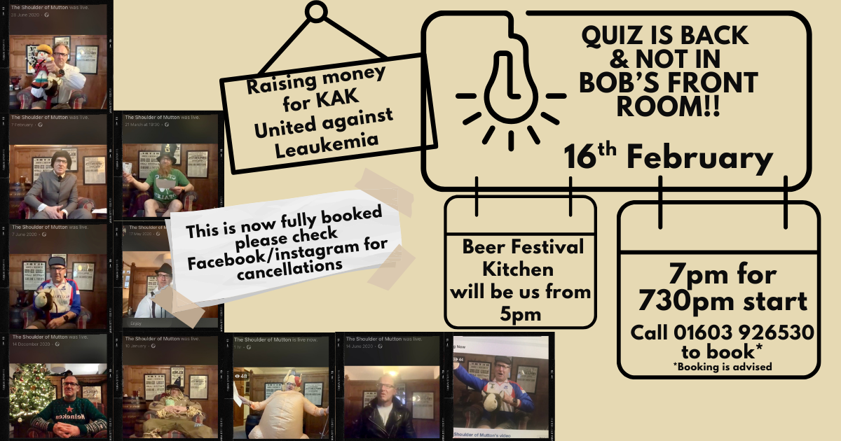 *Find a team of up to 6 – £2 per person – all entry fees go to that months nominated charity