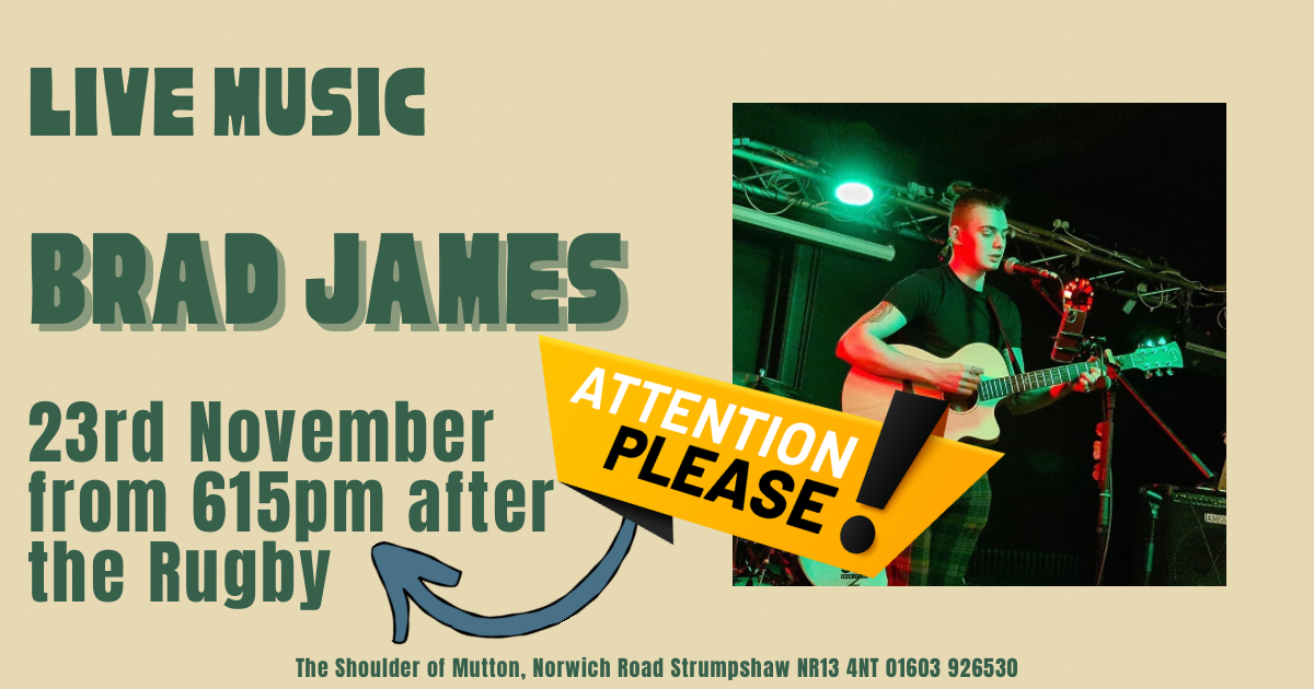 Sunday Sounds – Brad James Share: Web: 23rd November from 5pm Brad is back! A solo musician with a great voice playing a fantastic music.